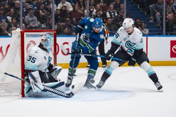 The Kraken made it 2-0 on Stephenson’s power-play goal at 8:53 of the second. The Canucks misfired on a 2-on-0 short-handed rush, and Jared McCann took the puck the other way. He left a drop pass for Jordan Eberle, who weaved through the high slot and found Stephenson for a one-timer from the right faceoff circle.