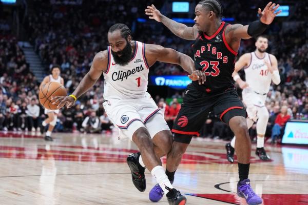 James Harden scored eight of his 31 points in overtime and added 10 assists Friday night as the visiting Los Angeles Clippers defeated the Toronto Raptors 121-117.